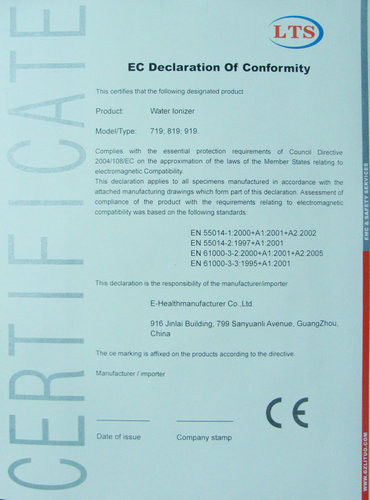Standard:CE Number:LVD20080419001 Issue Date:2008-04-28 |